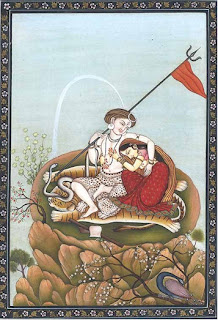 Theo Huyền Thoại của Ấn Giáo một vị Thánh Sĩ Bà La Môn muốn lên tham khảo về giáo lý pháp thuật quan trọng nơi cung trời nên xuất hồn lên cõi cuả Ngài SHIVA, khi đến cung điện của Ngài SHIVA vị Tu Sĩ kia gỏ cửa nhưng không ai trả lời, Ông lại gỏ cửa to hơn nhưng vẩn không trả lời. Ông lại tiếp tục gỏ lại chờ đợi sau cùng gỏ trở thành đập dộng đùng đùng như trống, cuối cùng thì Ngài Thiên Đế ShiVA cũng xuất hiện, nhưng với giáng đệu chậm rãi tay trái ôm quàng vai vợ là bà PARVATI ân ân ái ái để bước ra gặp vị Giáo Sĩ Bà La Môn.