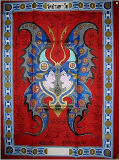 Nangrub – Bùa tình ái phía sau khăn bùa là thịt bụng của một người đàn bà. Bùa này tên là Nang rub, có lẽ người bán chế ra tên, vì trong hình Nàng cầm lỏ lường để gần âm hộ mình. Bùa này có dùng âm linh. (800USD)