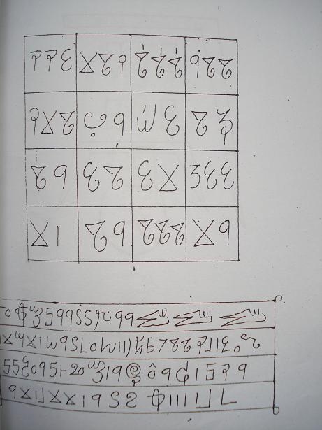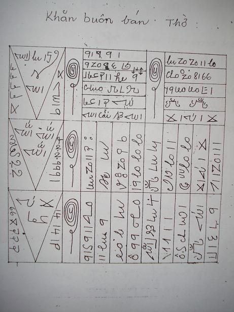 Chú : Buốt thô hăn ú ta lô thô hăn ú bây danh ca bây dăm mẹc mẹc.( Một lá bỏ vào nhà , một lá kẹp vào chiếc đũa đóng tại ngã ba đường ).