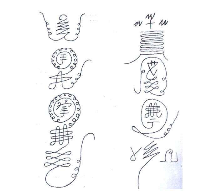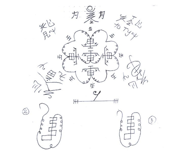 Chú* Sất Đốt, Hách Hách Dương Dương, Nhật Xuất Đông Phương, Ngô Sắc Thư Phù Phổ Tảo Kiết Tường, Khẩu Thổ Tam Muội Chi Hoả, Phục Hy Môn Tốc Chi Quang Tróc Quái, Sử Thiên Bồng Lực Sĩ Phá Tật, Đụng Uế Tích Kim Cang Giáng Phục Yêu Quái Hoá Vi Kiết Tường, Thần Binh Hoả Cấp Cấp Như Luật Lệnh Sắc.