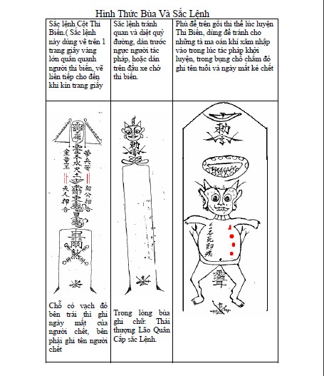 *** Những lá bùa trên tất cả đều phải dùng giấy vàng và châu sa đỏ để vẽ, theo người dịch hiểu thì tất cả phù này đều phải vẽ trước khi vào đàn tế luyện, và đóng ấn lên bùa, nguyên tắc đóng ấn gồm có, Ấn Thái Thượng Lão Quân đóng lên chỗ có chữ Sắc ở tại đầu lá bùa, Ấn Sắc Lệnh đóng vào giữa bùa, và Ấn Bản Mệnh đóng vào đuôi bùa.