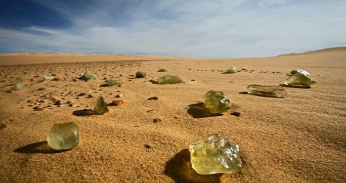 Tháng 12/1932, Patrick Clayton, nhà khảo sát của Cục Địa Chất Ai Cập, trong khi đang lái xe giữa những cồn cát của của sa mạc Great Sand Sea – Bắc Phi đã nghe thấy tiếng lạo xạo dưới bánh xe. Khi xuống xem điều gì đã gây ra những âm thanh đó, ông đã tìm thấy những khối thủy tinh lớn nằm lẫn trong cát.