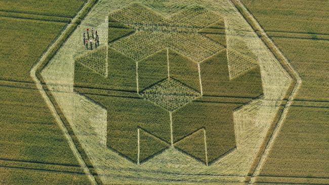 Một vòng tròn từng xuất hiện trên cánh đồng lúa mì ở Clay Hill, Warminster, Wiltshire, trở nên nổi tiếng sau quan sát UFO trong những năm 60, 70, đã làm các chuyên gia bối rối với thiết kế rộng hơn 60m. Nguồn: Supplied