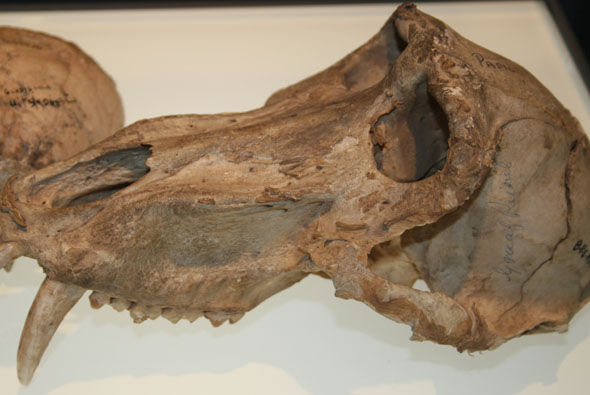 Hộp sọ của khỉ đầu chó. Một số cho rằng hộp sọ thuộc về một con khỉ đầu chó, tuy nhiên cấu tạo hàm răng có sự khác biệt. (Ảnh: Internet)