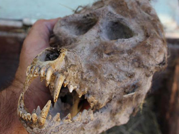 người sóiHộp sọ được tìm thấy trong chiếc hộp khóa kín. Đối chiếu với ảnh chụp hộp sọ khỉ đầu chó và hộp sọ chó sói bên trên. (Ảnh: Internet)