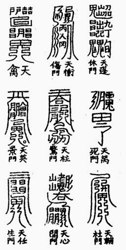 混元五斗圖 紅黑赤分 ○←混元道氣○ ↓ 陽化吾身 ○→出幽入冥○ ↓ 或隱或現○ ↓ ○←←←←←萬物皆成○ 天罡所指,出入萬人, 不見吾兵,隱匿吾形, 賊兵敗亡,吾軍安寧 急急如律令。