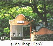 1/- Đình HÀN THẬP :- Trên đường từ bảy cái tháp Phật đi vào chùa Quốc Thanh, phải đi ngang qua một cái đình, một chiếc cầu . Đình có tên là “Đình Hàn Thập” và cầu có tên là “Cầu Phong Can”. Đây là những vật kỷ niệm lấy tên ba vị cao tăng ở chùa Quốc Thanh đời Đường.