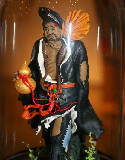 豐幹出身唐代官家,父親做過尚書,他雖是官宦子弟,卻出家做了和尚,經過披頭散髮,穿著破爛衣衫,在國清寺裏當舂火僧,與寒山、拾得相親,後人稱他們三人為“三賢”。