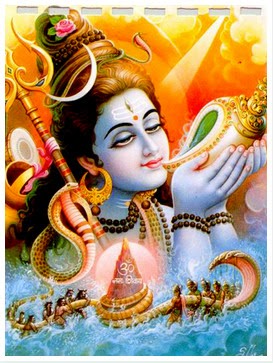 Ganga (nữ thần sông Hằng) đã mang nguồn nước tinh khiết từ thượng nguồn của các dòng sông để hạ nhiệt cho cổ họng của Shiva. Nhưng vẫn chưa đủ. Cho đến khi thần Chandra (mặt trăng) chui vào trong mái tóc dài rậm của Shiva giải toả sức nóng đang nung đốt trong đầu và luồng hơi lạnh giá trong cơ thể Ngài. Sau những giây phút “xuống địa ngục rồi lên đỉnh”, Shiva vô cùng phấn khích và bắt đầu hân hoan nhảy múa vũ điệu tandawa nritya.