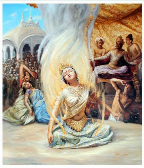 Vẫn còn oán ghét chàng rể điên điển nên vào một dịp lễ hội khác Daksha cố tình không mời Shiva đến dự. Sati phải về dự lễ một mình. Trong lúc hội hè tưng bừng Daksha lại buông lời sỉ nhục Shiva trước mặt tất cả các vị thần. Để bảo vệ danh dự của chồng, Sati nhảy vào đống lửa thiêng tự sát. (Đấy là nguồn cội của phong tục “Sati” của đạo Hindu. Theo phong tục này người vợ tự thiêu sau cái chết của chồng để bày tỏ sự chung thủy-Chúng ta không phán xét ở đây chỉ ghi nhận lại lịch sử và phong tục- NP).
