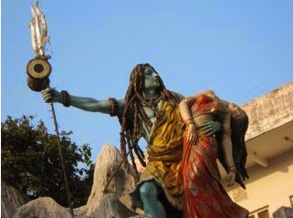 Đau buồn vô hạn trước cái chết của người vợ yêu, Shiva mất trí. Ông bồng xác vợ tuôn chạy cuồng dại khắp nơi làm cho mặt đất chấn động, đe dọa tới sinh mạng của muôn loài. Để cứu thế giới, thần Vishnu liền hóa phép cắt thi hài của Sati thành nhiều mảnh rơi xuống nhiều nơi trên đất Ấn .Shiva đau khổ điên cuồng, ôm xác Sati nhảy múa dẫm nát thế giới, làm vũ trụ rung chuyển, Trời Đất náo động. Vishnu thấy thế bèn ném đĩa Giác Luân chặt thân thể Sati ra thành 108 khúc rơi xuống 108 nơi trên đất Ấn (mỗi nơi hiện vẫn còn điện thờ).