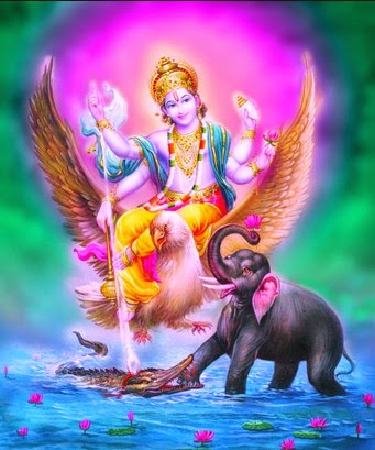 Từ đó, Garuda được liên kết với các vị thần và là vật cưỡi đáng tin cậy của Vishnu, cũng như sự thù địch không thể nguôi được, Garuda luôn bắt lấy những con rắn một khi có dịp.