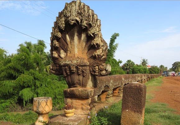 Tượng rắn thần Naga ở hai đầu cầu. Đây là di tích không thể bỏ qua của du khách khi đến tham quan cố đô Siêm Riệp.