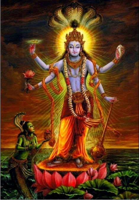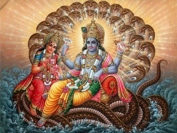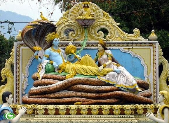 Thần Vishnu nằm nghỉ trên Sheshnag, một con rắn thần thoại.