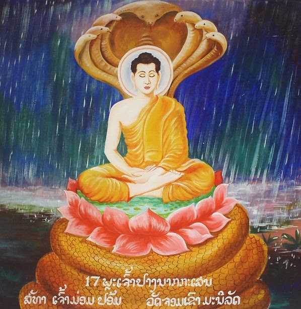 2. Câu chuyện thứ hai là rắn thần Naga Mucalinda che chở cho Đức Phật .