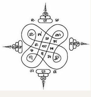 Dòng bên trong lá Bùa có nghĩa là Hộ mệnh cát tường. Các đường kéo vào từ bên ngoài tượng trưng cho rốn của đức Phật .Vòng Talisman là có nghĩa là khuôn mặt của Đức Phật. Brahman - Đề cập đến sự hiện diện của tam Thần Brahma. Tam Thần Thần biểu thị cho đức Phật hoặc tất cả ba thế giới - Các Brahman, có nghĩa rằng tất cả ba mặt Brahman là Thần Shiva, Brahma và Vishnu. Bốn hình ngoài cùng có nghĩa là bốn châu lục hoặc bốn yếu tố đất, nước, gió, lửa. Ý nghĩa trong các bức ảnh của hình xăm là hình ảnh Thiên thần, người và động vât.