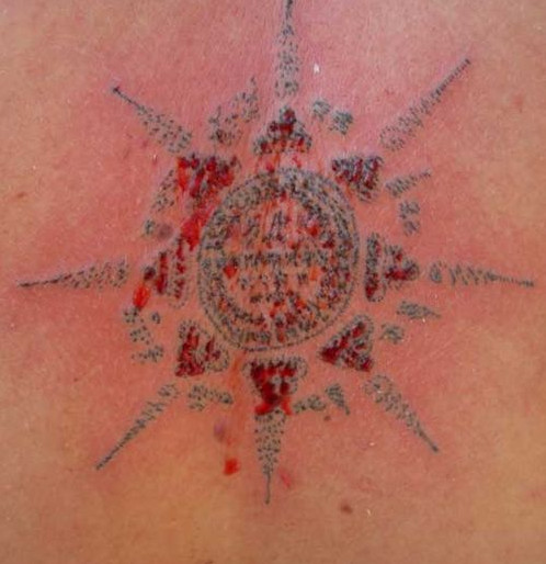 Sak yant là một hình thức xăm “phép” khá thiêng liêng đối với người Thái (sak có nghĩa là đâm chích, yant là những hình, ký tự thiêng có thể khơi dậy được quyền lực siêu nhiên). Hình thức xăm này không đơn giản chỉ để làm đẹp mà nó còn là một loại bùa hộ mệnh.