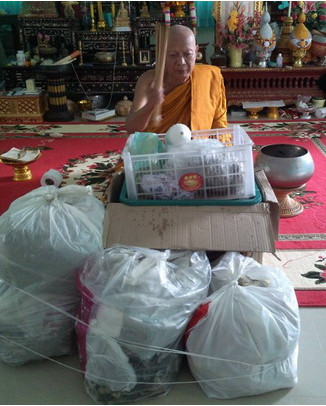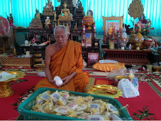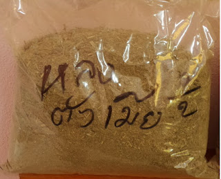 Các túi Ngải khô được nhà sư Luang Pho Khun Phra chùa Wat Phra Yai tôm phép.