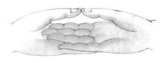 Hai tay tác Nội Phộc, kèm dựng hai ngón cái, hai cổ tay cách nhau khoảng ba thốn (3 tấc Tàu), co cong hai ngón cái cài chéo nhau ba lần.