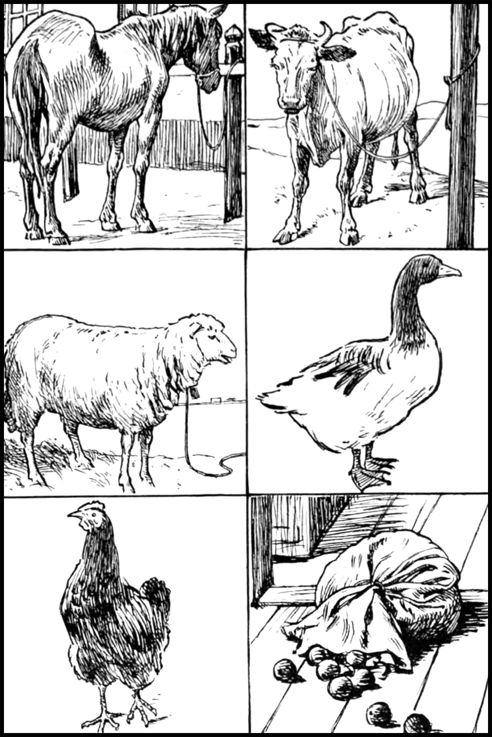 Trên chặng tiếp theo của cuộc hành trình, ông lão đã lại đổi chú cừu lấy một con ngỗng, vì nhớ tới ước ao của bà cụ: “Giá có một con ngỗng mà thả giữa đàn vịt thì tuyệt vời biết bao”. Nhưng rồi, ước mơ của bà lão cũng không kịp thành sự thực khi một cô gà mái đẹp đẽ đã thu hút tất cả sự thích thú của ông lão, vì thế mà ông không ngần ngại đổi ngỗng lấy gà.