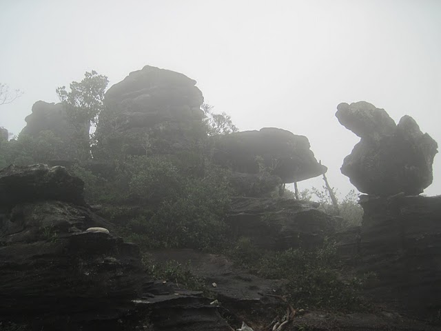 Chúng tôi rời nhà lúc 6 giờ sáng ngày 28/4 thẳng tiến về tỉnh Cambode, ghé chợ mua bông, trái cây và đi “hú họa” trong kiên quyết. Xe dừng lại trước cổng đường lên núi, tôi ngồi phía trước cầm bông để tỏ vẻ cho thấy đoàn lên chùa cúng Phật. Sau một hồi lâu Na nói chuyện với những người gác cửa chúng tôi được phép lên núi phải trải qua 30km xe chúng tôi mới đến được chùa Nam Thiền. Chúng tôi diện kiến ông Lục, chủ trì chùa, người Việt nam duy nhất tu ở chùa này. Mây mù tỏa hơi lành lạnh, rồi những giọt mưa sớm của mùa mưa năm nay khiến chúng tôi liên tưởng đến Đà Lạt quê nhà. Sau bữa cơm trưa cháu Minh (tu sĩ chùa Phước Điền An Giang) đề cập đến việc lội bộ đi tiếp. Tôi không hiểu là đi đâu nhưng cứ nghe loáng thoáng là xuyên rừng khoảng 60 km cả đi lẫn về là nhụt chí quyết định không đi. Ý tôi lúc đó cũng giống bốn người đoàn thành phố (cô Diệu, chị Bình, chị Bích, Thúy). Để khuyến khích mọi người không sợ khó, sợ khổ Minh kể cho chúng tôi nghe một câu chuyện có người đi rừng bị lạc nhưng gặp được ông già cho trái cây, thức ăn, chỉ lối ra nhưng đến khi gặp lại mọi người tất cả đều xác nhận ở đó chỉ toàn là cây. Tôi vẫn quyết định ở lại, và cứ nghĩ mọi người đã ra đi với một cái xoong, mấy ổ bánh mì, vài gói mì ăn liền và yên trí đi rửa chén. Một cảm giác nuối tiếc vụt lên trong tôi, nhưng rất may Minh đã quay lại và bảo chưa đi. Nắm cơ hội xuýt bị vuột, tôi quyết định đi và chỉ kịp chạy lên nhà nghỉ báo với mọi người cùng đoàn, mang theo một bộ đồ, chiếc mền xỏ vào đôi dép có quai hậu mà chị Bích đổi cho. Tốp xuyên rừng chúng tôi gồm tôi, cháu Minh, anh Hai (ba cháu Lãm tu ở chùa Phước Điền ngày xưa đã dẫn chúng tôi hành hương ở vùng Thất Sơn), và Thảo, Thái một cặp uyên ương sắp cưới. Tôi đã không kịp hỏi Minh đi đâu chỉ nghĩ là đến một ngôi chùa nào đó trong rừng nên cắm cổ đi. Chúng tôi lầm lũi đi trong sương mù, rồi mưa bắt đầu rơi mỗi lúc một nặng hạt. Khung cảnh trước mắt chúng tôi hiện ra mỗi lúc một đẹp. Cháu Minh cho tôi biết đây là Lan Thiên. Chỉ có thể là một nhà văn giỏi mới có thể tả hết được cảnh đẹp ở đây. Rất tiếc tôi là một người dở văn chương nên chỉ có thể “chép” lại bức tranh thần tiên này bằng ngôn ngữ sơ sài mong bạn đọc thông cảm. Thật vậy, đó là một “bình nguyên” đá bằng phẳng màu đen có, bảy màu có, có rất nhiều những tảng đá to nặng hàng tấn hình con cá sấu, chim, trâu, qui, rồng… tha hồ cho tâm mơ của bạn vẽ thú trong một rừng cây kiểng các loại, chả thế mà Ngài Cử Đa trước kia có để lại trong cuốn “giảng Tà Lơn” của mình là: