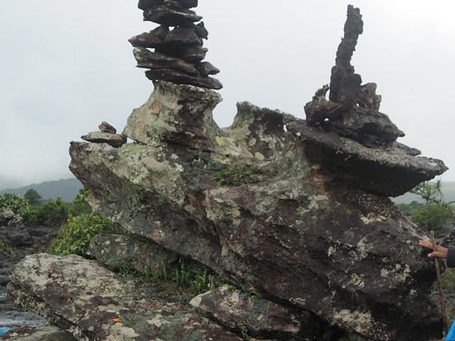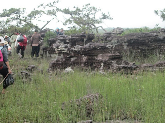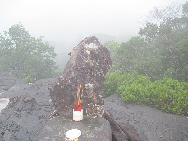 Chúng tôi rời nhà lúc 6 giờ sáng ngày 28/4 thẳng tiến về tỉnh Cambode, ghé chợ mua bông, trái cây và đi “hú họa” trong kiên quyết. Xe dừng lại trước cổng đường lên núi, tôi ngồi phía trước cầm bông để tỏ vẻ cho thấy đoàn lên chùa cúng Phật. Sau một hồi lâu Na nói chuyện với những người gác cửa chúng tôi được phép lên núi phải trải qua 30km xe chúng tôi mới đến được chùa Nam Thiền. Chúng tôi diện kiến ông Lục, chủ trì chùa, người Việt nam duy nhất tu ở chùa này. Mây mù tỏa hơi lành lạnh, rồi những giọt mưa sớm của mùa mưa năm nay khiến chúng tôi liên tưởng đến Đà Lạt quê nhà. Sau bữa cơm trưa cháu Minh (tu sĩ chùa Phước Điền An Giang) đề cập đến việc lội bộ đi tiếp. Tôi không hiểu là đi đâu nhưng cứ nghe loáng thoáng là xuyên rừng khoảng 60 km cả đi lẫn về là nhụt chí quyết định không đi. Ý tôi lúc đó cũng giống bốn người đoàn thành phố (cô Diệu, chị Bình, chị Bích, Thúy). Để khuyến khích mọi người không sợ khó, sợ khổ Minh kể cho chúng tôi nghe một câu chuyện có người đi rừng bị lạc nhưng gặp được ông già cho trái cây, thức ăn, chỉ lối ra nhưng đến khi gặp lại mọi người tất cả đều xác nhận ở đó chỉ toàn là cây. Tôi vẫn quyết định ở lại, và cứ nghĩ mọi người đã ra đi với một cái xoong, mấy ổ bánh mì, vài gói mì ăn liền và yên trí đi rửa chén. Một cảm giác nuối tiếc vụt lên trong tôi, nhưng rất may Minh đã quay lại và bảo chưa đi. Nắm cơ hội xuýt bị vuột, tôi quyết định đi và chỉ kịp chạy lên nhà nghỉ báo với mọi người cùng đoàn, mang theo một bộ đồ, chiếc mền xỏ vào đôi dép có quai hậu mà chị Bích đổi cho. Tốp xuyên rừng chúng tôi gồm tôi, cháu Minh, anh Hai (ba cháu Lãm tu ở chùa Phước Điền ngày xưa đã dẫn chúng tôi hành hương ở vùng Thất Sơn), và Thảo, Thái một cặp uyên ương sắp cưới. Tôi đã không kịp hỏi Minh đi đâu chỉ nghĩ là đến một ngôi chùa nào đó trong rừng nên cắm cổ đi. Chúng tôi lầm lũi đi trong sương mù, rồi mưa bắt đầu rơi mỗi lúc một nặng hạt. Khung cảnh trước mắt chúng tôi hiện ra mỗi lúc một đẹp. Cháu Minh cho tôi biết đây là Lan Thiên. Chỉ có thể là một nhà văn giỏi mới có thể tả hết được cảnh đẹp ở đây. Rất tiếc tôi là một người dở văn chương nên chỉ có thể “chép” lại bức tranh thần tiên này bằng ngôn ngữ sơ sài mong bạn đọc thông cảm. Thật vậy, đó là một “bình nguyên” đá bằng phẳng màu đen có, bảy màu có, có rất nhiều những tảng đá to nặng hàng tấn hình con cá sấu, chim, trâu, qui, rồng… tha hồ cho tâm mơ của bạn vẽ thú trong một rừng cây kiểng các loại, chả thế mà Ngài Cử Đa trước kia có để lại trong cuốn “giảng Tà Lơn” của mình là: