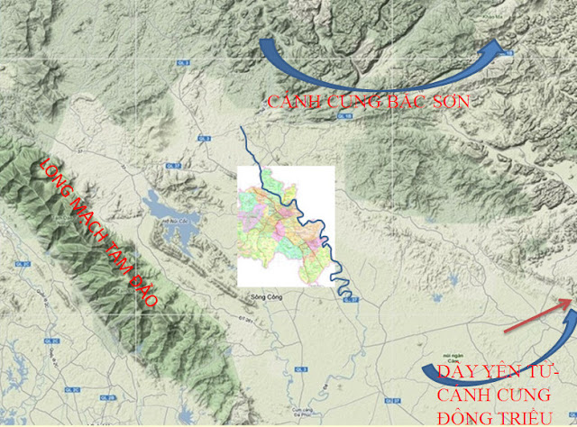 Để có thể khảo sát Địa mạch của một thành phố như Thái Nguyên, chúng ta phải đặt vị trí của nó vào trong tổng thể Long mạch của Việt Nam mới có thể thấy hết được những điểm mạnh , yếu của nó, từ đó mới xây dựng một sách lược phù hợp .Sách " Địa lý toàn thư" viết :