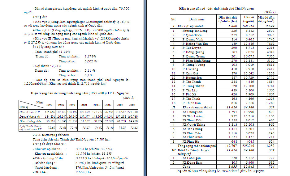 - Căn cứ bản đồ hiện trạng Thành phố Thái Nguyên tỷ lệ 1/5.000 và 1/10.000 mới đo đạc và các tài liệu mới điều tra năm 2003 có liên quan.