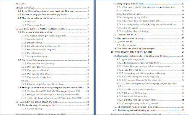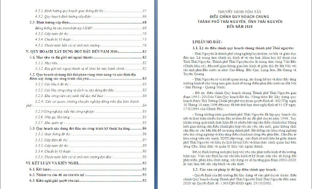 3/ BẢNG TÓM TẮT ĐIỀU CHỈNH QUY HOẠCH CHUNG THÀNH PHỐ THÁI NGUYÊN.