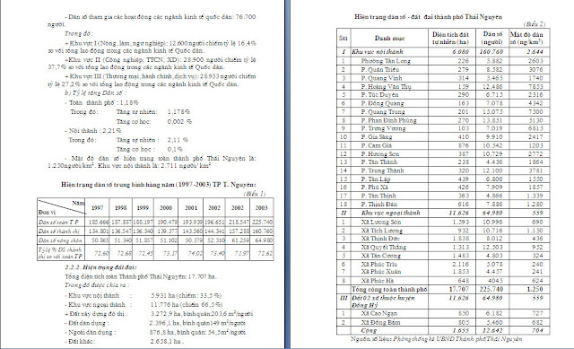 - Quy hoạch tổng thể phát triển kinh tế xã hội tỉnh Thái Nguyên đến năm 2010 (Do Sở kế hoạch và đầu tư Thái Nguyên lập Tháng 10 năm 1997).