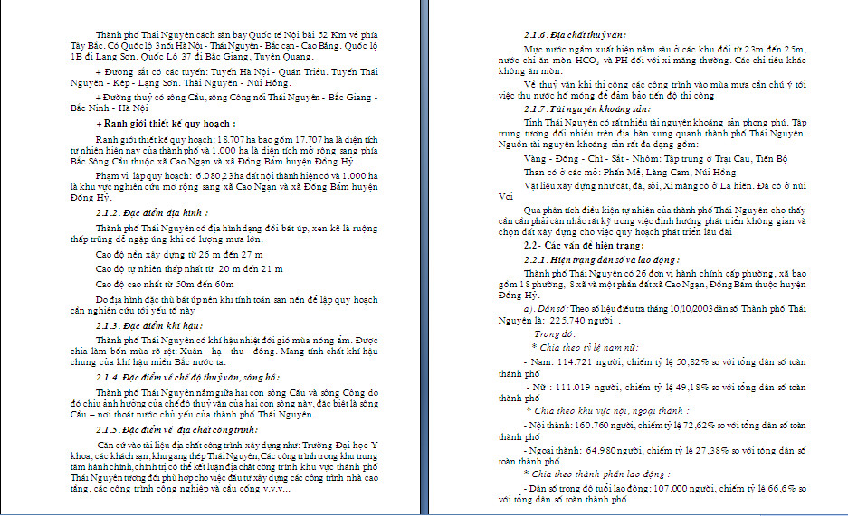 Qua phân tích điều kiện tự nhiên của thành phố Thái Nguyên cho thấy cần cần phải cân nhắc rất kỹ trong việc định hướng phát triển không gian và chọn đất xây dựng cho việc quy hoạch phát triển lâu dài.....