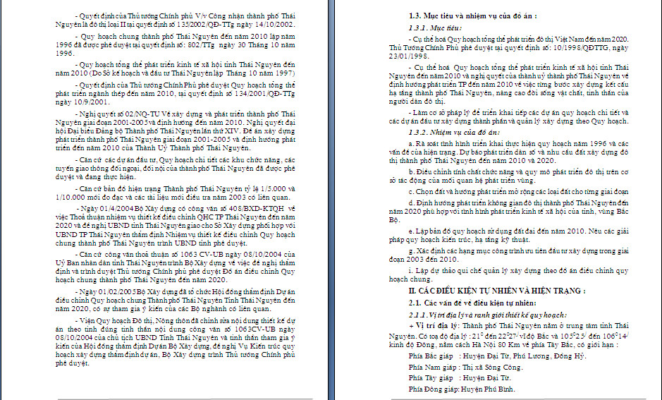- Căn cứ bản đồ hiện trạng Thành phố Thái Nguyên tỷ lệ 1/5.000 và 1/10.000 mới đo đạc và các tài liệu mới điều tra năm 2003 có liên quan.