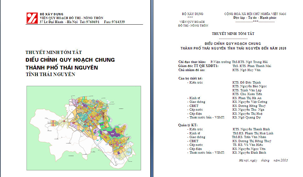 - Ngày 01/02/2005 Bộ Xây dựng đã tổ chức Hội đồng thẩm định Dự án điều chỉnh Quy hoạch chung Thành phố Thái Nguyên Tỉnh Thái Nguyên đến năm 2020, có sự tham gia ý kiến của các Bộ nghành có liên quan.