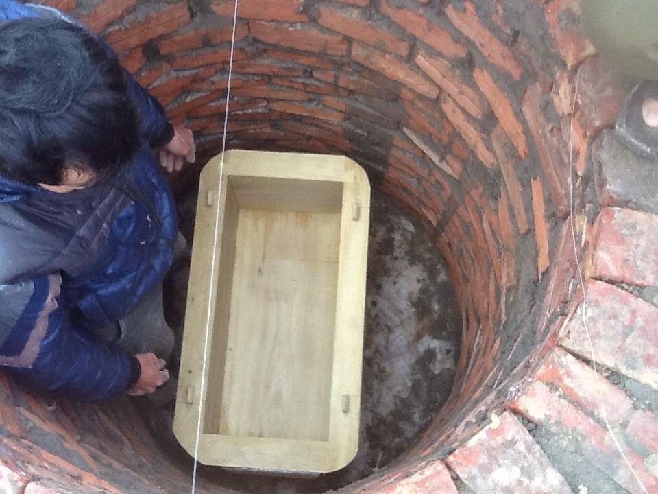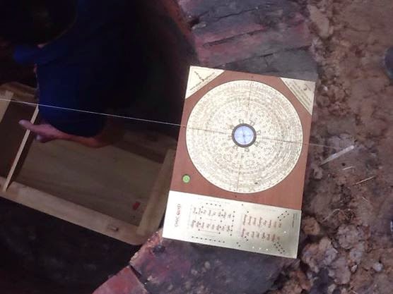 - Khi gặp trường hợp đất đào Huyệt mộ chẳng may gặp phải đất là Huyệt hung táng đã cải đi rồi, tốt nhất là tránh ra chỗ khác. Trường hợp bất khả kháng , người ta phải đào hết đất cũ đi đến phần đất liền thổ và đắt Quách và tiểu chìm hẳn vào lớp đất liền thổ đó. Sau khi lấp Huyệt , người ta phải dùng đất sạch ( tốt nhất là đất phù sa sông ) để lấp. Kinh nghiệm của dienbatn là trong quá trình lấp đất vào Huyệt mộ, lớp đầu tiên người ta dùng cát để cố định Quách không cho dịch chuyển sau khi đã Phân Kim - Điểm hướng. Lấp khoảng 1/3 chiều cao của Quách người ta mới cho đất mịn xuống tiếp cho đến khi ngang mặt trên của Quách. Tiếp sau đó mới cho đất cục lớn và lấp dần tới cách mặt đất khoảng 40 cm. Lúc này , phải cho một lớp cát có chiều dày khoảng 10 - 15 cm phủ lên trên. Mục đích của lớp cát này là để chống mối không cho ăn vào Quách. Khi những con mối đào hang tới lớp cát sẽ bị cát sụt xuống làm sập lỗ đào , khiến con mối đó bị giữ lại và chết trong lớp cát đó. Lưu ý là sau khi hạ quách xuống, phải cho tấm bia cũ ở mả hung táng xuống phía chân Quách. Sau đây là một số hình ảnh quá trình hạ mộ và thu Khí về Huyệt mộ do dienbatn thực hiện.