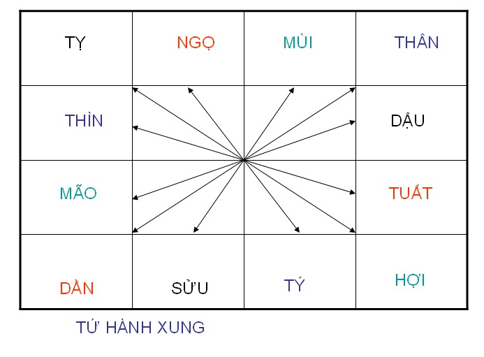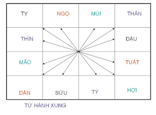 Tương xung (xấu) hàng can có 4 cặp tương xung (gọi là tứ xung).