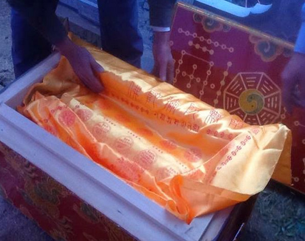 Sau đó người ta mới thực hiện dải tiền Âm và tiền Dương xuống mộ. Một vài nơi người ta dải 5 loại đậu năm mầu và những đồng xu cổ xuống mộ.