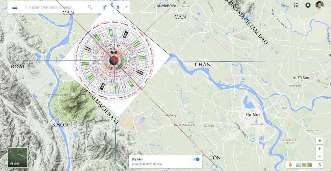 Đó là tấm sơ đồ sơn thuỷ ở phạm vi vĩ mô tầm thế giới. Thật kỳ diệu, các triền núi đó không thẳng băng mà uốn lượn như hình con rồng, tạo ra mạch núi và mạch nước tụ lại, rồi lan tỏa ở trên đồng bằng Bắc Bộ nước ta.