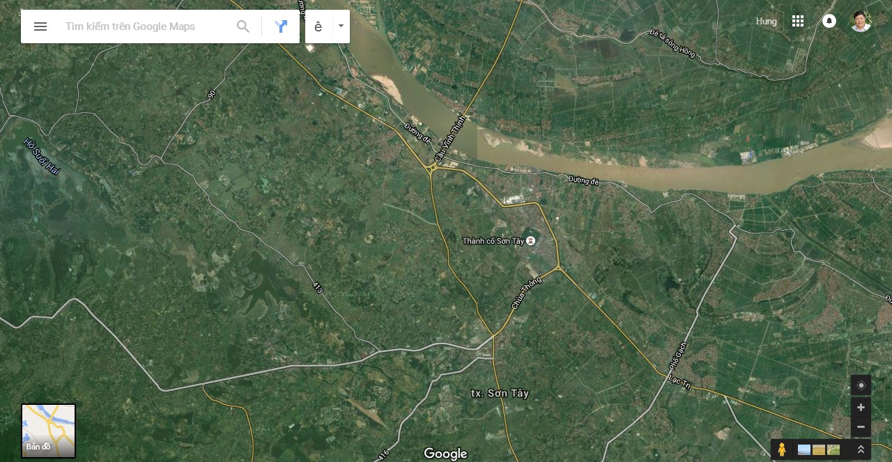 Sơn Tây nằm lọt trong vòng tay của sông Đà ,và từ ngã ba Hạc sông Thao và sông Đà nhập vào nhau tạo thành sông Hồng ôm lấy cả một vùng đất đồng bằng sông Hồng . Theo trục Càn - Tốn ( Tây Bắc - Đông Nam ) thì Sơn Tây có Thanh Long là sông Hồng chảy ôm vào và Sơn Tây nằm ở Hữu ngạn của sông Hồng .Các bạn cứ để ý một điều rằng , tất cả các thành phố lớn hầu như nằm ở bên hữu ngạn các con sống ( Nhìn theo chiều dòng chảy hữu ngạn nằm bên tay phải ). Bạch Hổ của Sơn Tây là dãy ba Vì cao chót vót. Nội Minh đường là những cánh đồng thẳng cánh cò bay của các huyện Phúc Thọ, Đan Phượng... Trung Minh Đường có sông Hồng chảy cuộn vào và Ngoại Minh Đường là biển xanh rào rạt.