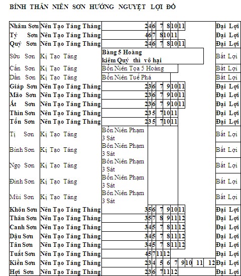 1. Năm Thân, Tý, Thìn (hay tháng 7, 11, 3 ta) sát ở 3 phương Tỵ, Ngọ và Mùi tức phương Nam.