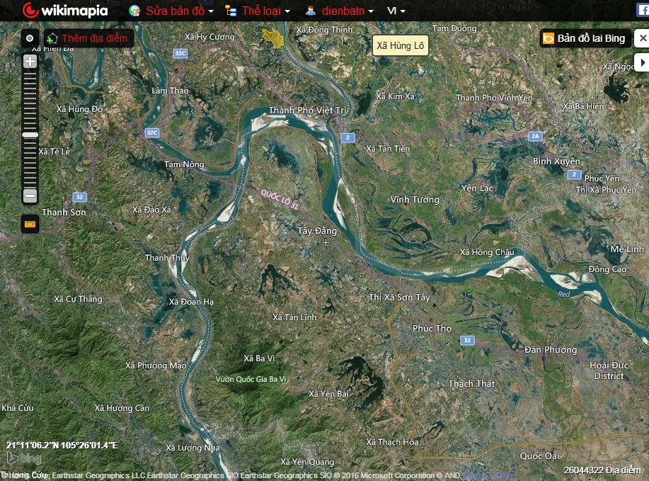 Núi Ba Vì quay ngang khai trướng nhìn thủy tụ, dòng sông Hồng uốn cong như muốn lưu luyến ôm vòng về phía núi Ba Vì, quả là một vùng đất sơn thủy hữu tình.