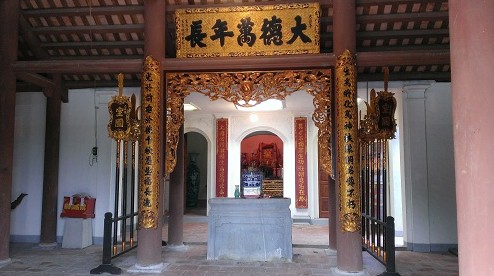 Kế tiếp với sân chầu là khu thờ chính có kết cấu kiến trúc kiểu “Tiến chữ Nhất, hậu chữ Đinh” gồm Tiền tế, Trung từ và Hậu cung. Tòa Tiền tế gồm 3 gian 2 dĩ được làm theo kiểu kiến trúc truyền thống, chồng diêm hai tầng tám mái. Phía trên treo bức đại tự ghi 5 chữ Hán “Đại đức vạn niên trường” - 大德德秊長 - (nghĩa là: Đức lớn trường tồn mãi mãi).