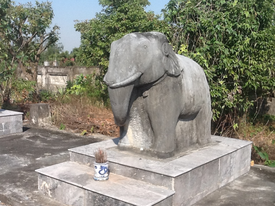 Trải qua hàng trăm năm, cùng những biến cố lịch sử của đất nước, đặc biệt qua hai cuộc kháng chiến chống Pháp và chống Mỹ, lăng mộ cụ Bùi Đăng Châu đã bị quân giặc tàn phá làm hư hỏng nhiều hiện vật. Theo lời kể của ông Bùi Đăng Sức, một hôm giặc quần đảo trên bầu trời tưởng rằng Voi đá sẽ bị ảnh hưởng nghiêm trọng, nhưng ai cũng ngạc nhiên là sau cái cái lớp khói đen xì của bom đạn bao quanh toàn khu mộ, Voi thần và các bức tượng khác vẫn bình yên và vẫn uy nghiêm, vững vàng.