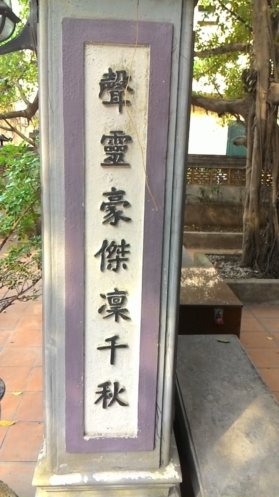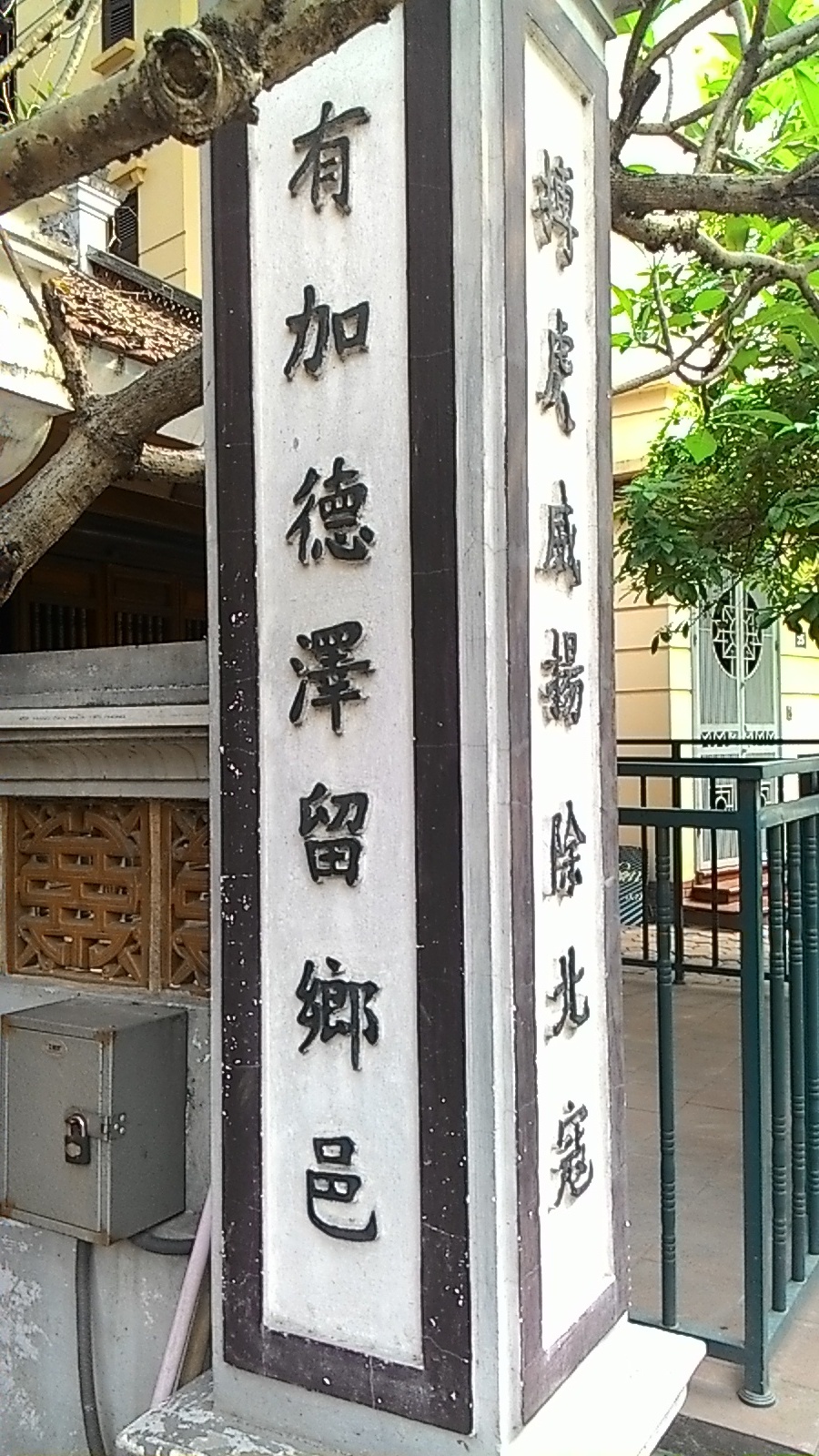 Trước cổng và hai bên có rất nhiều trụ khắc các câu đối .