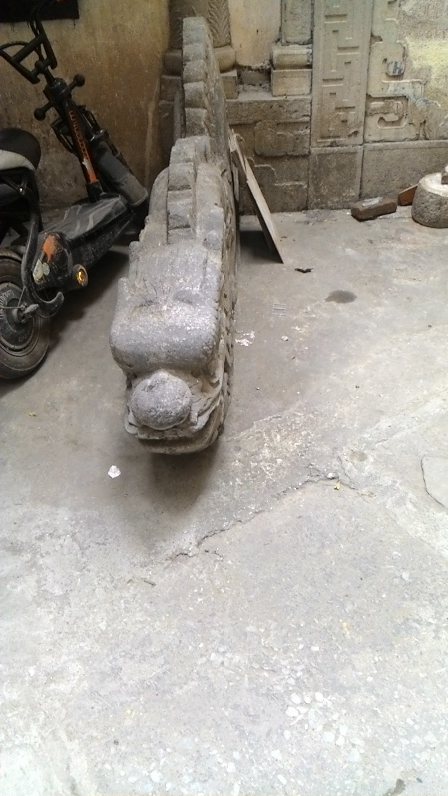 mất... phần chân do người dân đã tôn nền xi măng trùm lên cả chân tượng!