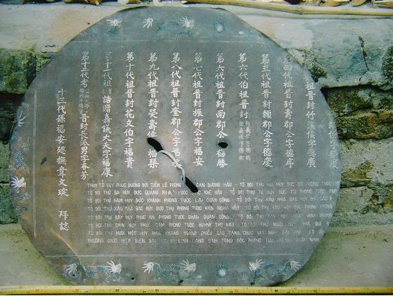 TẤM PHẢ HỆ HỌ VI BẰNG ĐỒNG NẠM BẠC RẤT ĐẸP , BỊ NGƯỜI DÂN Ở ĐÂY LẤY LÀM NẮP CHUM . Lần này , dienbatn cùng con cháu họ Vi mới lấy về được và rất nhiều nước mắt đã rơi .