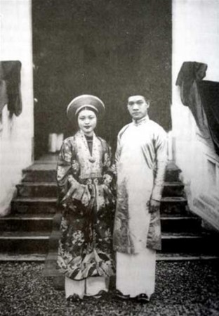 Cô dâu Vi Kim Ngọc và chú rể Nguyễn Văn Huyên trong ngày cưới (1936). Ảnh: Tư liệu