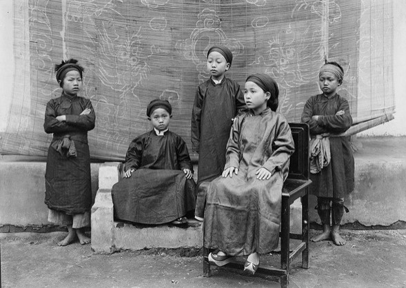 Các em gái cụ Vi văn Định ( 1896)- 2 em trai và 1 em gái của cụ: cụ Vi văn Lâm ngồi ghế và cụ Vi Thị Tư đứng còn một ông thì sau này mất trẻ .