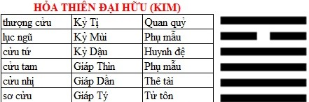 Lấy Càn long là nội quái, lấy hướng Ly (hoặc hướng Nhâm/Dần/Tuất) làm ngoại quái được quẻ Hỏa Thiên Đại Hữu.