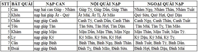 Công thức sử dụng quẻ dịch "Bát quái nạp can chi" theo nguyên tắc sau: