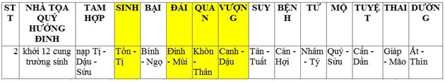 như vậy muốn tính 12 cung trường sinh cho ngôi nhà này, ta sơn Quý nạp vào tam hợp Tị - Dậu - Sửu, khởi trường sinh tại Tị.